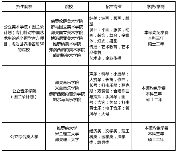 —意大利圖蘭朵計(jì)劃(公立美術(shù)學(xué)院、公立音樂(lè)學(xué)院)、公立綜合類大學(xué)留學(xué)直通車