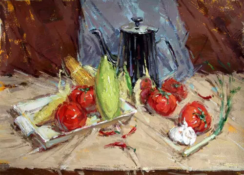 色彩較素描來說,更注重整體,所以要學會整體觀察,沒有整體,細節即使畫的再好,畫面也會顯得雜亂無章。很多同學覺得整體不知如何做到,我相信只要多畫,在頭腦中的“整體——局部——整體”的作畫意識逐漸會清晰起來,對于調配顏色、色彩之間的銜接、干濕等問題上逐一克服,定會做到整體。