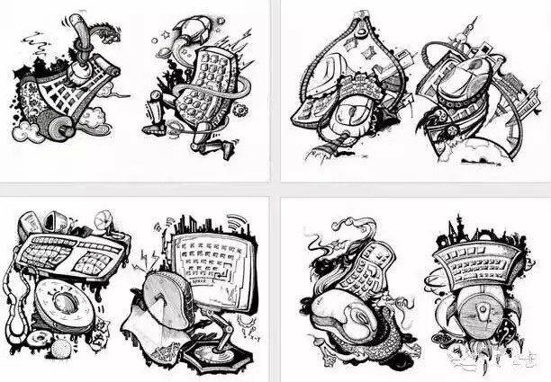 想象添加是創意速寫的制勝法寶。在繪制草圖的時候就要通過聯想來進行構思,對物體的所處環境、使用狀態和故事情節進行天馬幸虧的想象,這是獲得高分的關鍵。