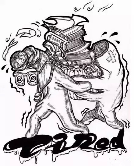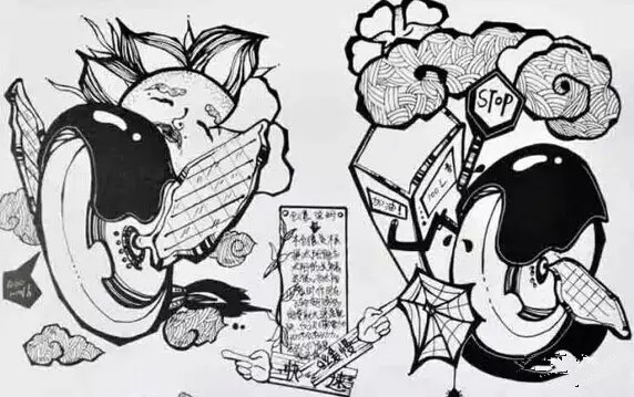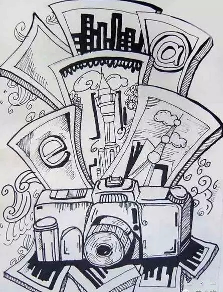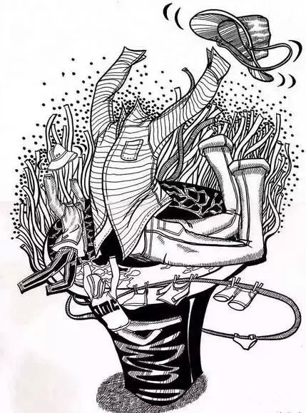 (3)留白。在剛開始學習創意速寫時要樹立起“留白”意識。留白可是畫面靈動而有透氣感,輕松而不失重點。留白的原則是注意與黑色部分形成對比,打破大面積的黑色和灰色,圍繞主題尋找留白的可能.
