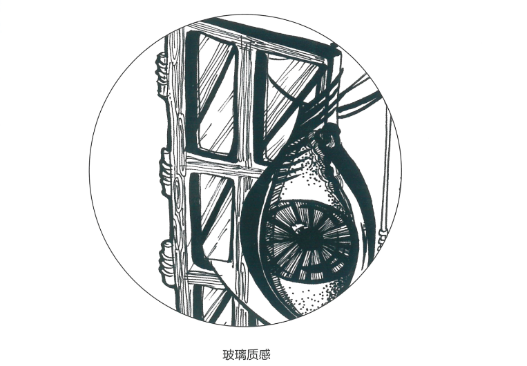 質感表現是繪畫物體的重要內容。創意速寫中常見的物體質感有玻璃、金屬、木頭、水流等。質感的表現可以結合素描繪畫的方法,根據物體的不同特點進行表現。例如金屬類物體明暗對比強烈,表現木頭時紋理刻畫是重點等。