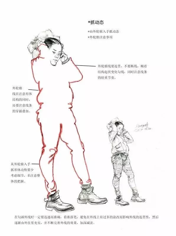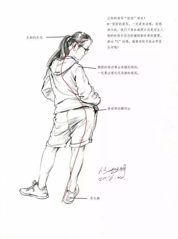 動態可以概括成兩點:軀干與四肢。速寫不像素描,動作不僵硬人物才算是畫活了,畫的時候注意軀干四肢之間的動態曲線。