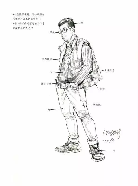 速寫的節奏就是指畫面構成的黑白灰、人物動態構成的韻律關系、細節描繪與粗描淡寫的對比,有了節奏感,畫面看起來就協調了。