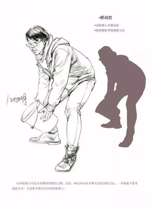 不是所有人都是盤3坐5站7半,五官也不一定要是三庭五眼。可以剪影地去觀察,剪影觀察重外形,就是去觀察人物的外輪廓線,從大體先把人物在腦子里摳出來。