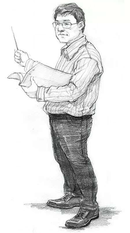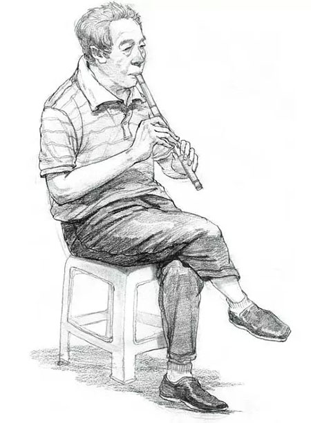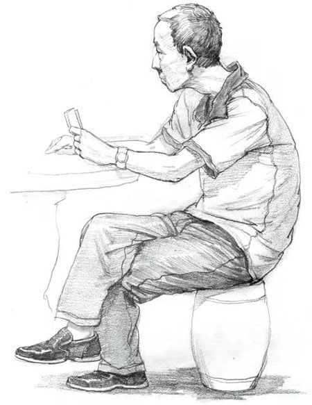 衣紋線多指關節處的衣褶,在表現衣褶時,要抓住關鍵的幾個進行強調,要找準前后的穿插關系,避免不分前后上下的線條堆積。衣褶也是表現畫面疏密效果的關鍵所在。衣紋線條一般較短,表現要靈活。