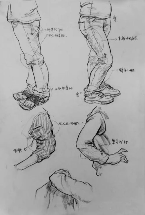 “骨法用筆”強(qiáng)調(diào)了我們?cè)谟镁時(shí)應(yīng)該根據(jù)物象的形體變化為支撐,善于把握物象的實(shí)質(zhì),即骨架。速寫在用線時(shí)也應(yīng)注意線條的穿插、取舍和提煉,注意線條的對(duì)比、變化和節(jié)奏(如輕重、虛實(shí)、方圓、曲直、疏密、粗細(xì)、長(zhǎng)短)。