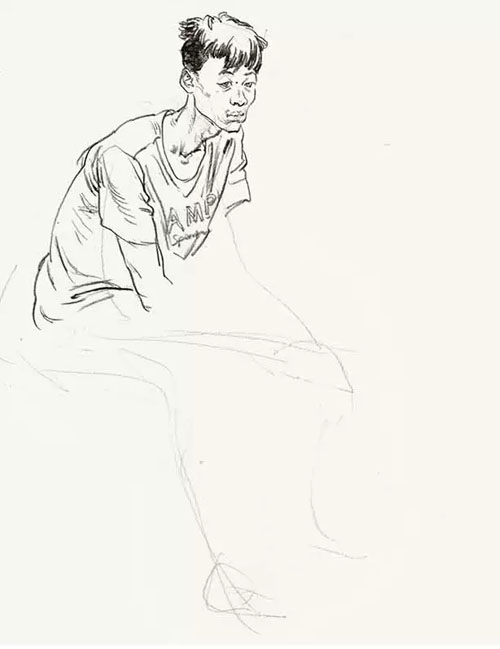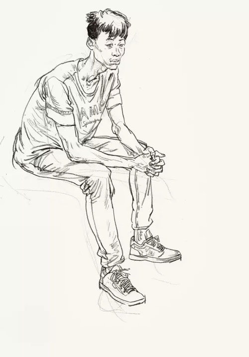 2、坐姿速寫步驟圖學習: