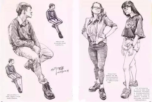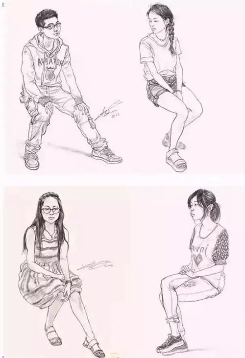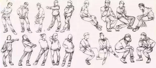 一幅速寫的成敗,手的表現(xiàn)也不可忽視,畫手要注意其外形及透視變化,須把握關(guān)節(jié)間的角度,手指不可一一死描,應(yīng)注重其整體形態(tài)與手勢。