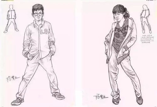 畫手還要注意其手形與手勢,捕捉手的特殊“表情”。要從衣服緊貼身體的部分著手刻畫,因?yàn)榫o貼部位形體明顯,是骨骼與肌肉結(jié)構(gòu)的突起點(diǎn)和關(guān)節(jié)轉(zhuǎn)折點(diǎn),也是人物運(yùn)動(dòng)姿態(tài)的關(guān)鍵點(diǎn),注意在要點(diǎn)處用筆要肯定。