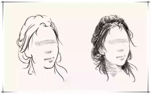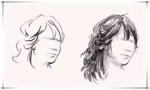 根據發型的特點用輕松的線表現頭發的蓬松感