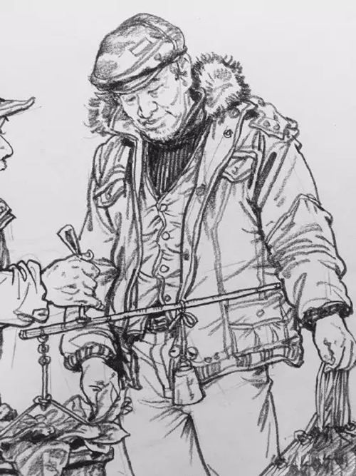 2、起稿的時候,我們已經對所畫的對象進行了一遍理解,在進入正稿階段可以從局部出發,一般從前面的人物的頭開始畫。人物的頭部是精神面貌的重點,所以要畫得細致些。