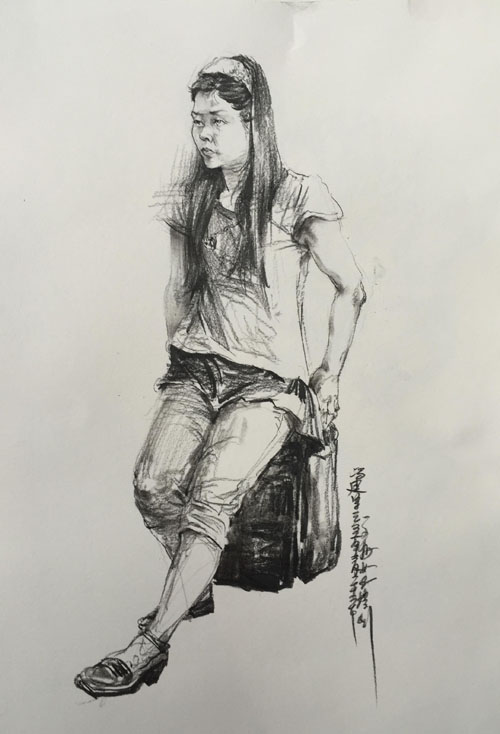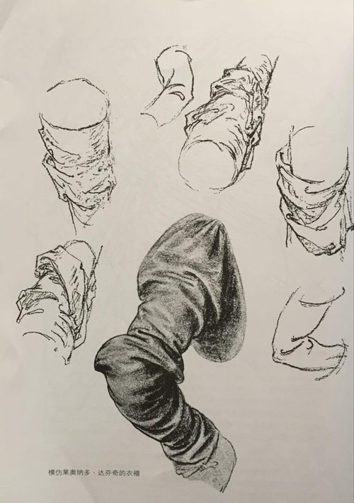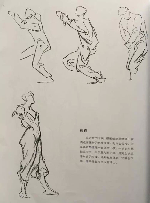 結合對人體造型的理解,分析人物在各種動態下形體的扭曲和所受到各種牽扯力的作用衣紋的變化。衣紋的穿插一切服務于人體,可以將人體結構、體塊表現出來才是成功的。