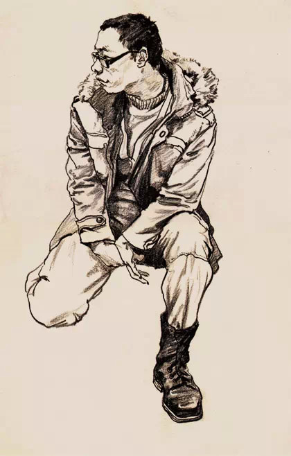 衣褶的描繪要體現人體結構。衣褶的產生與變化是由人體運動引起的,動態的變化在人體各部位呈現不同的衣紋皺褶關系。衣褶描繪要注意主次、疏密,強調選擇員能體現人體結構和動態特征的主要衣褶紋加以描繪,次要部分畫得弱或去掉一些,切忌平均對待。同時衣褶的描繪要注意質感表現,厚薄、粗細的不同質地要形成不同的衣褶變化。