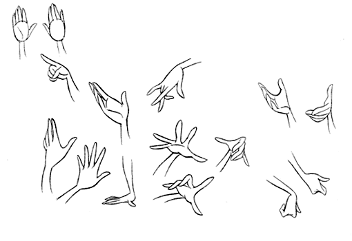局部是指手、足的動態造型,通過手、足所傳達的信息是其語言的延伸,手與足的動作不僅能夠表現其本身的基本功能,它還可以成為表情“語言”的補充,在刻畫動物或其他造型時,手與足必要時會作擬人化的處理,如鳥的翅膀會變成一只手的形狀,直立的熊與獅等等。